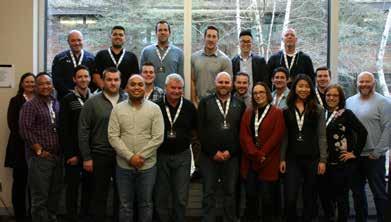 Members of our teams from Regina, Calgary, Toronto, Cambridge, Hamilton, London, Winnipeg, Dallas-Fort Worth, Denver and Kansas City branches pictured at their final day of Tremco training in Cleveland, Ohio. They also made time for some team building activities together outside of the classroom.