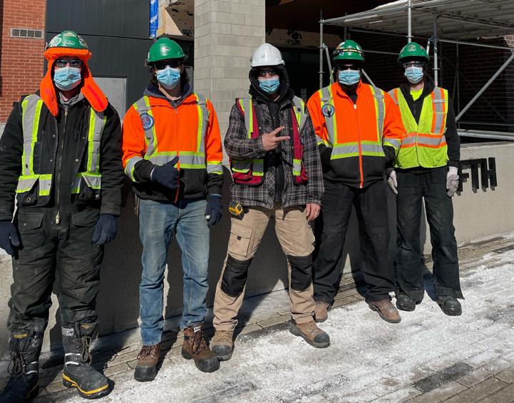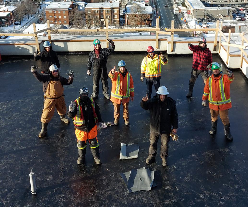 Ottawa metals crew working hard on Fifth and Bank which is a sevenstorey residential building. They are applying about 15,000 SF of Axiom panels and 500 SF of fibre cement panels. Ottawa metals crew working on the Service and Inspection building for the Ottawa Light Rail Train (OLRT). Work includes insulated panels, translucent panels and Accumet panels. In photo, left to right: Robert Gosselin, Chris Dube and Ben Ranger. Ottawa roofing service crew is working at the Children’s Hospital of Eastern Ontario. The work consists of major mechanical upgrades for the Sim Labs. In photo, left to right: Turner Allison, Erich Schultz, Michael Berard, Spencer Berard, Joseph Muise and Nassio Golden.Flynn Seattle Plays their Part in Changing the Skyline