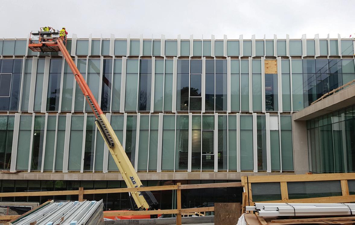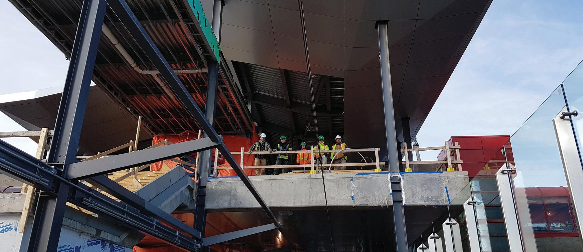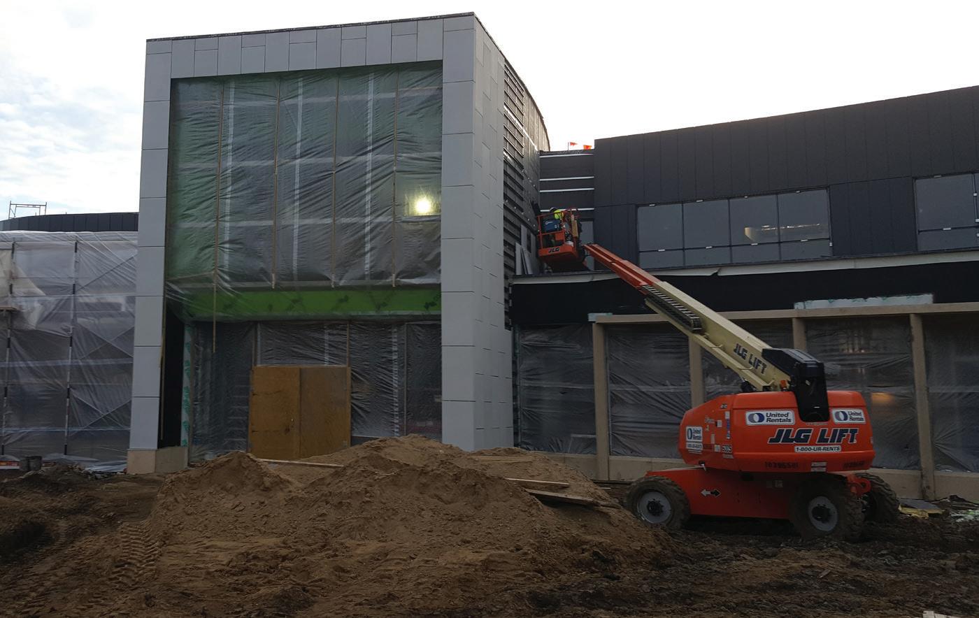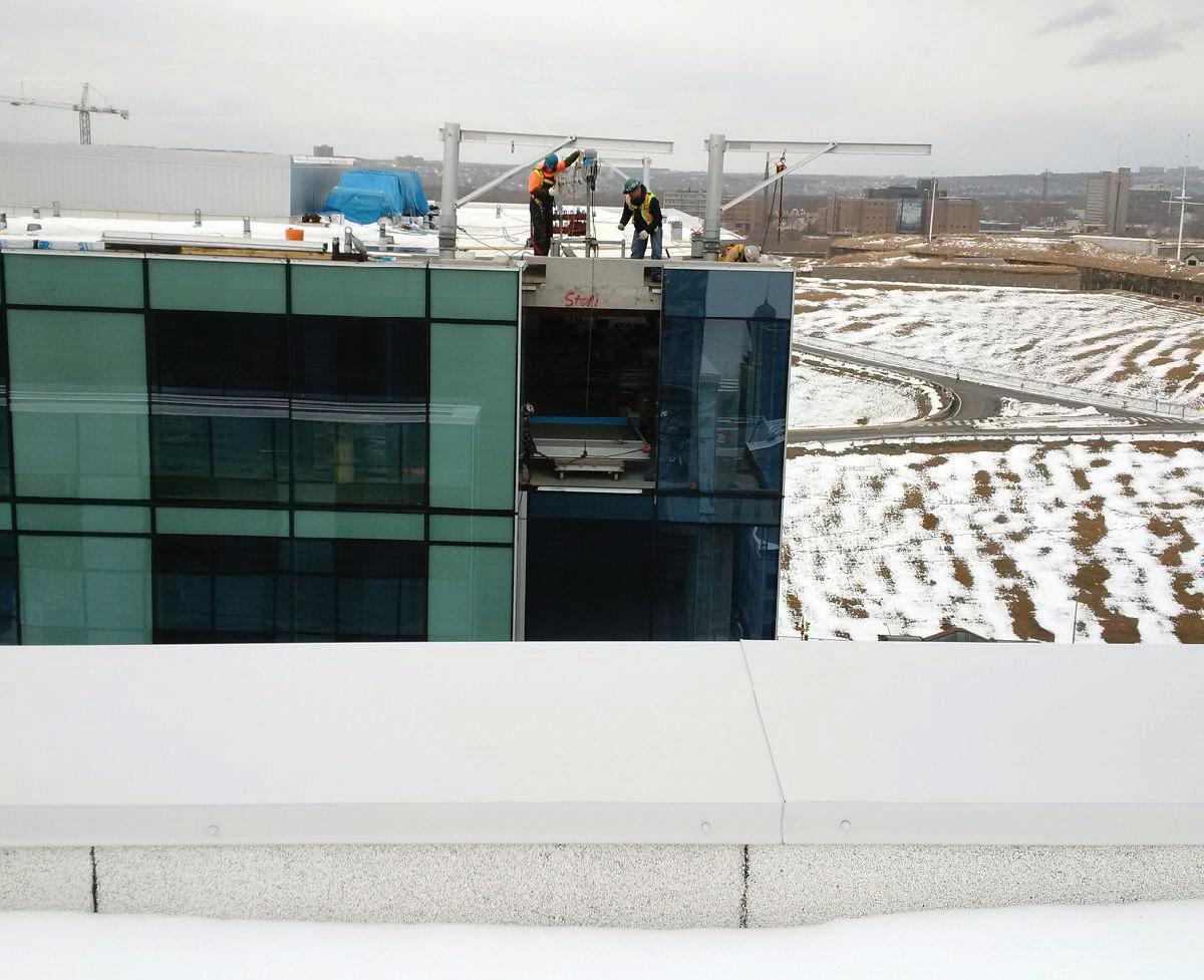The Roofing (torch-on built in gutters) is assigned to Wahib Othman (Roofing Foreman) and Dylan Solecki; Metals (standing seam roof and longboard soffits) are looked after by Shawn Mason (Metals Foreman), Jason O’Hanley and Ryan Van Bree. Glazing work is being carried out by Shane Blyth (Glazing Foreman), Rob Newell, Cody Daku and John Glasser.
