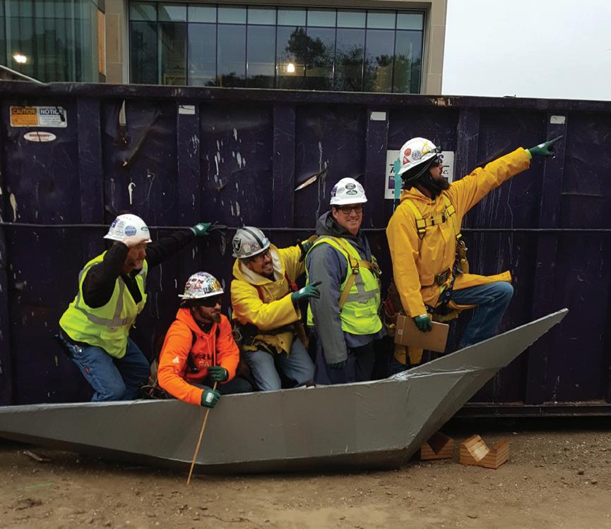 The team is currently working at the Kansas State University, Seaton Hall project in Manhattan, KS. The work started in January, and the team hopes to finish up in mid-May. The weather and site conditions have proven tough. The weather has been extremely rainy as of late, so the team took advantage of a duct tape canoe someone fashioned together to show that they are going all out to get this project done, a little bit of rain won’t stop them.