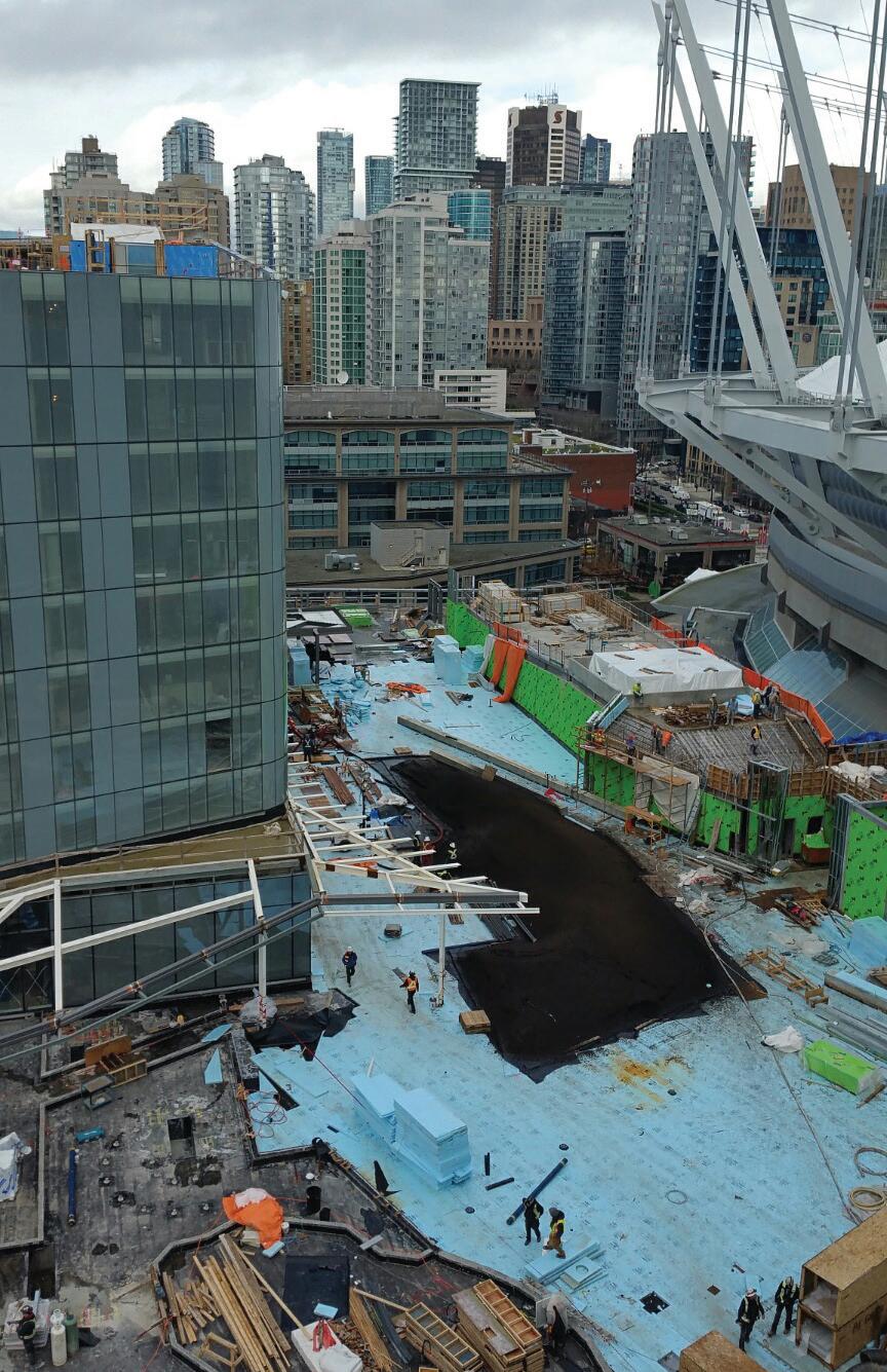 The Parq Resort and Casino is the largest private construction project in BC and scheduled to open in the fall. It is going to contain two boutique hotels and a casino with over 30,000 sq. ft. of public outdoor space on the level six podium. It consists of over 180,000 sq. ft. of SBS roofing, most of it is an inverted system.