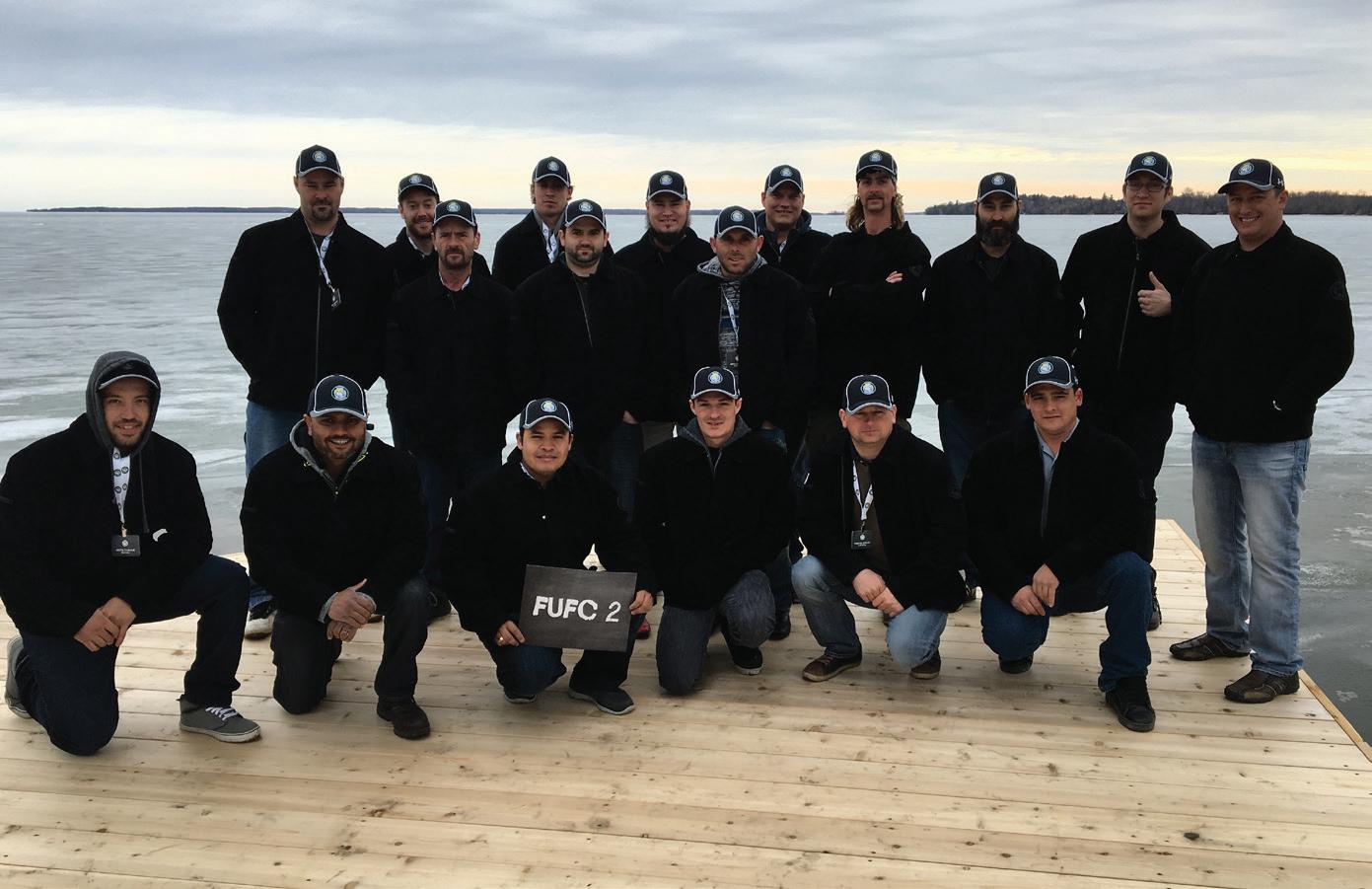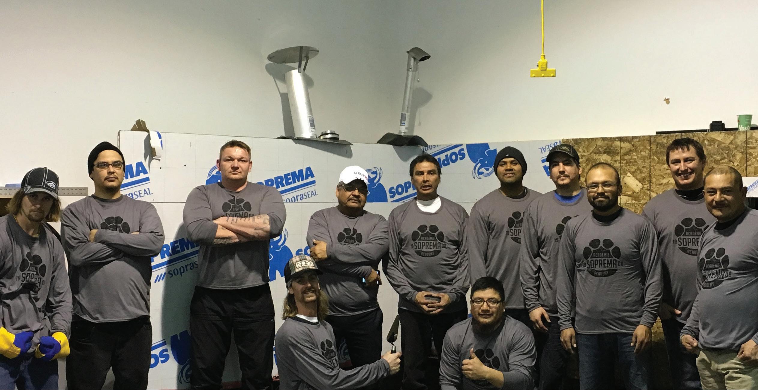 From left to right: Jordan McGregor, Jon Neapew, Roman Kurowski (Soprema trainer), Dave McGregor, Randy Monkman, Larry Neapew, Marlow Deaffie, Dan McLean, Scott Lavallee, Johny Quevedo, Drew Halliday and Joaquin Salazar