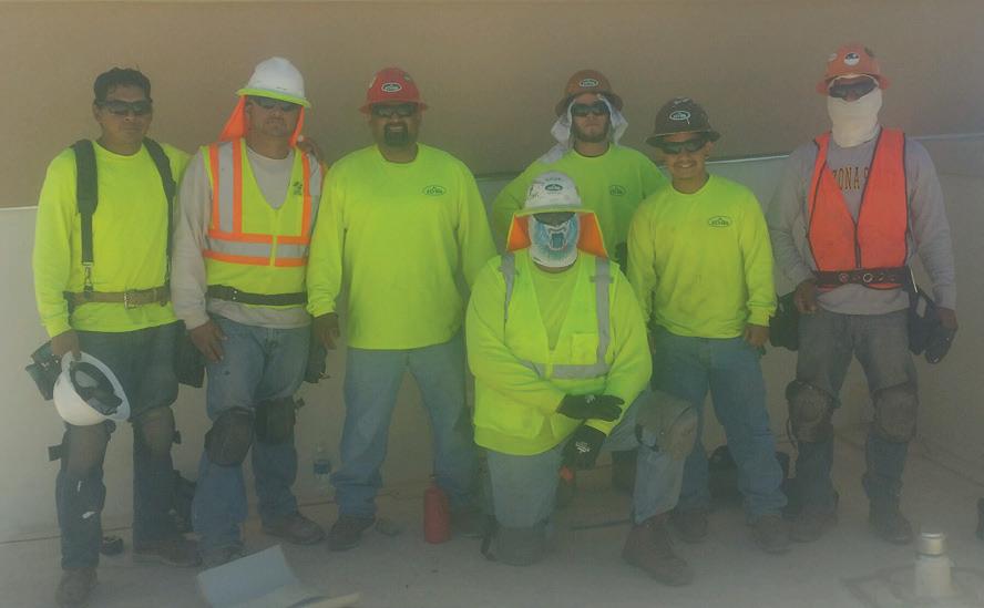 Ernie Velasco, Jim Quick, Rob Loera Jr and Luis Martinez Delafuente are working on Carlisle waterproofing at Arizona State University’s Student Pavilions for JE Dunn. The customer was so pleased with the performance on the TPO scope of 30,000 sq. ft. that they added 3,000 sq. ft. of waterproofing for an amenities deck. This project was particularly challenging due to constant student foot traffic.