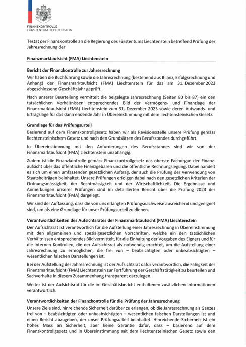 In January 2024, the FMA was served with a lawsuit before the Court of Appeal under the Official Liability Act. From today’s perspective, this lawsuit has no impact on the 2023 financial statement.