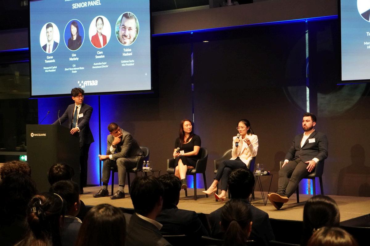 Next was the Senior Panel, featuring Goran Tomasevic, the Vice President of Macquarie Capital Real Estate, Lisa Moriarty, a short-term interest rates trader at Citibank, Clare Smeaton, an Assets Management Investment Director in Australian Super, and Tobias Hasbani, the Vice President of Asset & Wealth Management of Goldman Sachs.