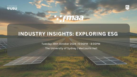 The Industry Insights: Exploring ESG event is the final event on the FMAA calendar and was hosted on the 29th of October at MacLaurin Hall, The University of Sydney. This keynote event provided an opportunity for students to learn about the Environmental, Social, and Governance (ESG) trends taking place in the financial services industry, and how ESG considerations will shape the future of businesses and markets, and how it might influence students’ potential career paths.