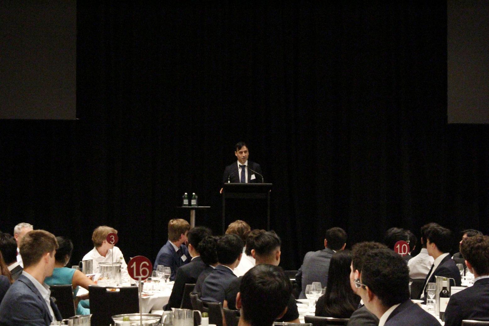 The event began with Keynote speaker Emanuel Petros, Head of Healthcare APAC at FMAA’s gold sponsor firm Macquarie, who shared his wealth of learnings from decades of corporate finance experience Students were able to hear his inspiring story while enjoying a two-course meal and drinks Following this, students