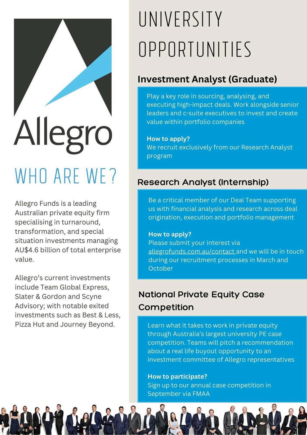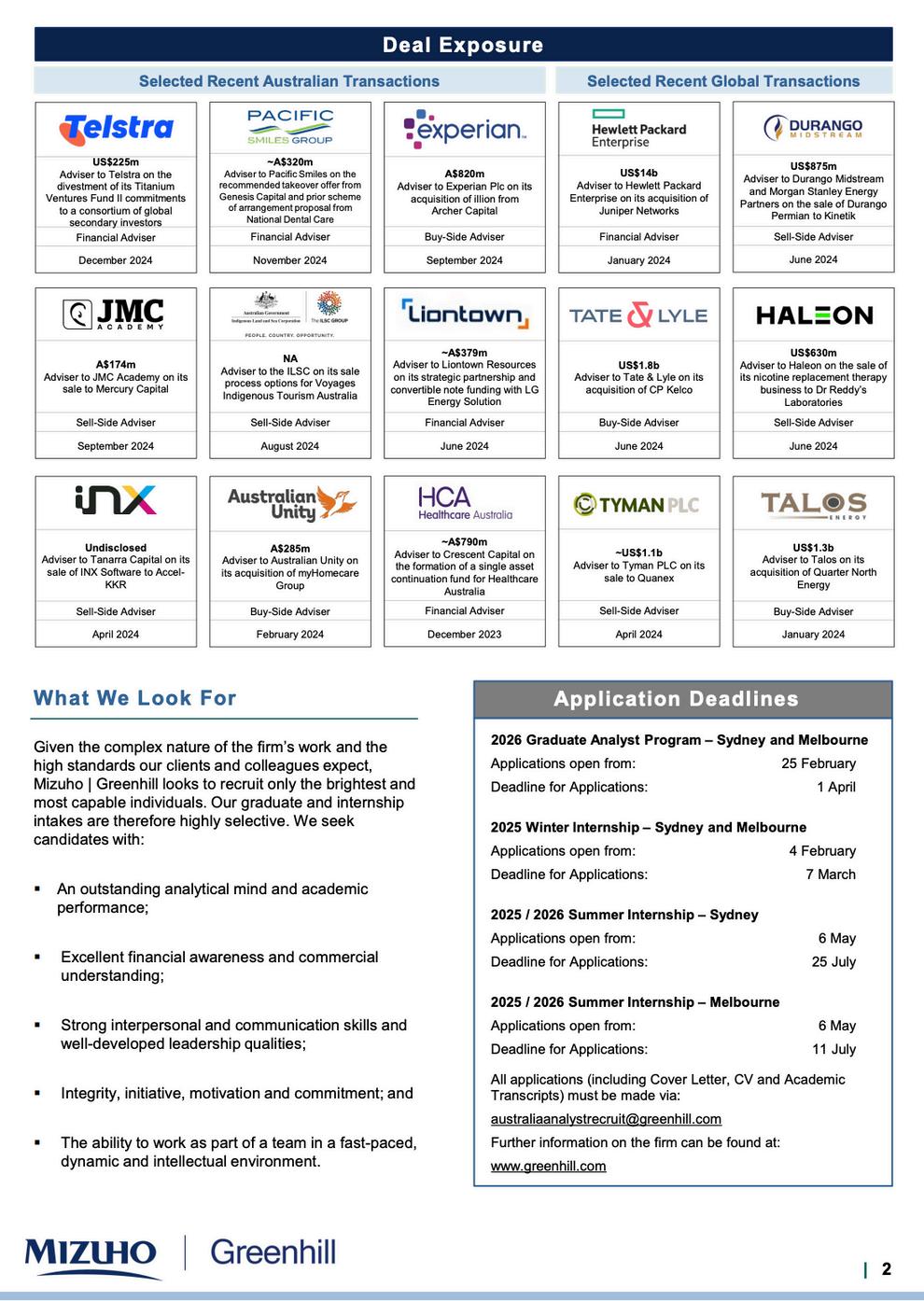 Sponsors featured: Macquarie Group, Allegro Funds, Altman Solon, Atlas Infrastructure, Azure Capital, Bain Capital, Barrenjoey, BCG, Blackstone, Bloomberg, Chartered Accountants ANZ, CPA Australia, Dimensional, EY, EY Port Jackson Partners, Grant Samuel, Mizuho | Greenhill, Goldman Sachs, Houlihan Lokey, ICA Partners, JPMorganChase, Kearney, Nomura, MA Financial Group, Oliver Wyman, Pinnacle Investment Management, Pitcher Partners, RBC Capital Markets, Soul Patts, Stanton Road Partners, UBS, Yarra Capital, Wesfarmers