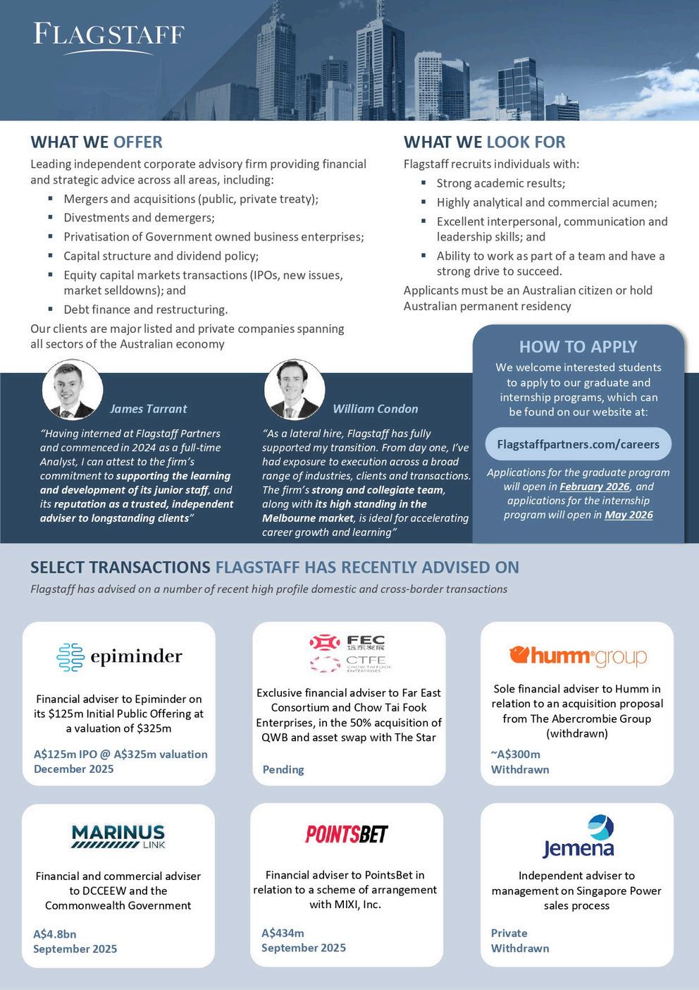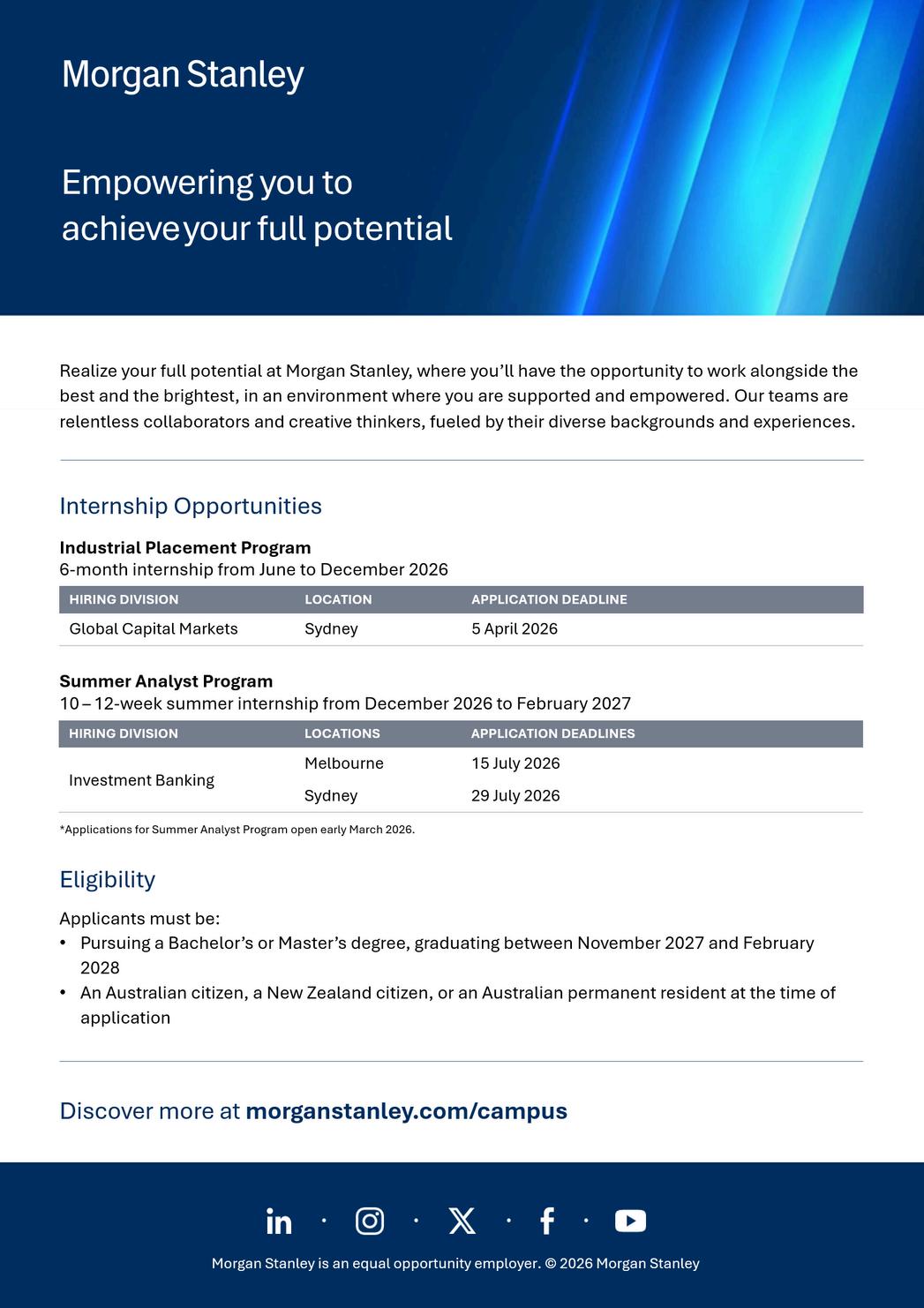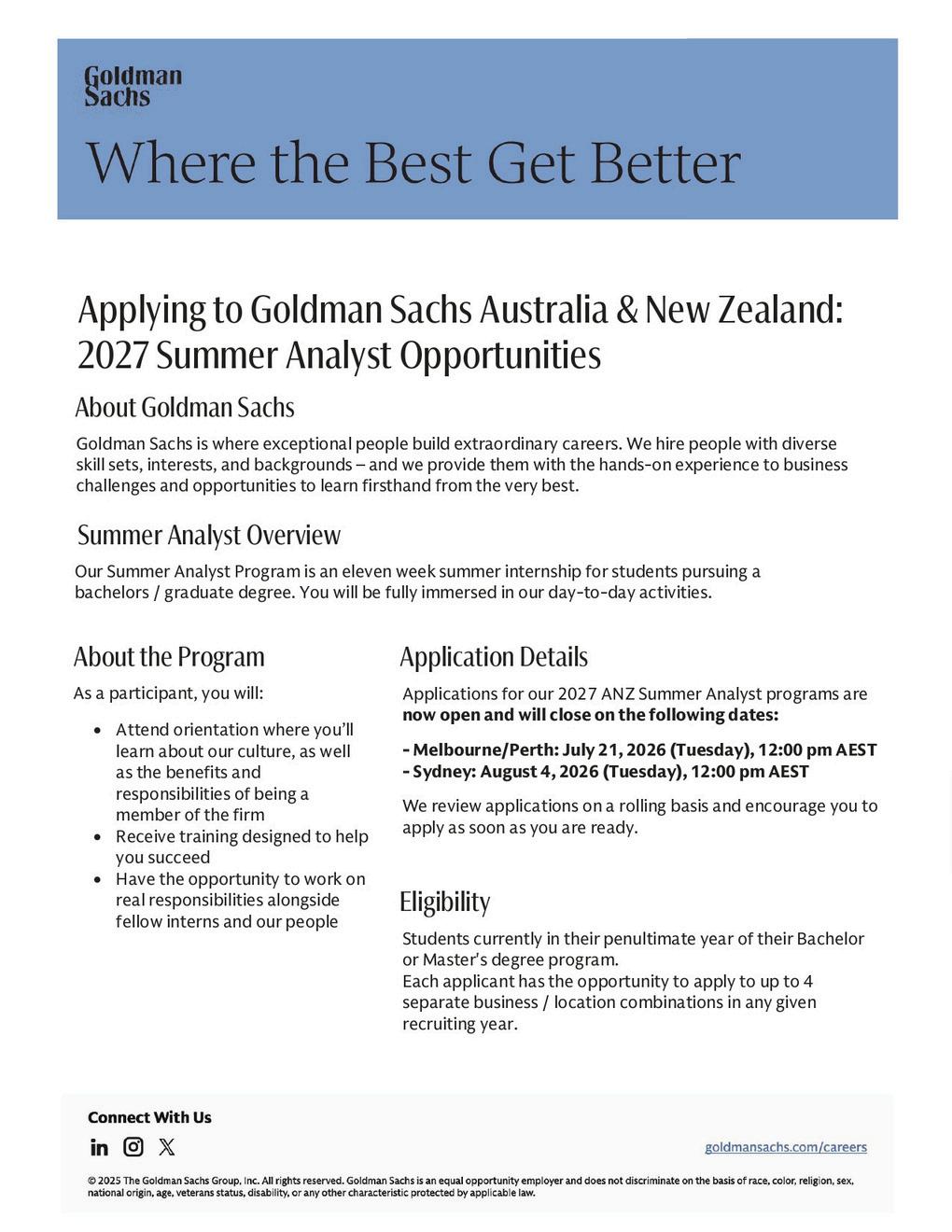 2027 Graduate Program: Applications open 23 February 2026, and close 29 March 2026