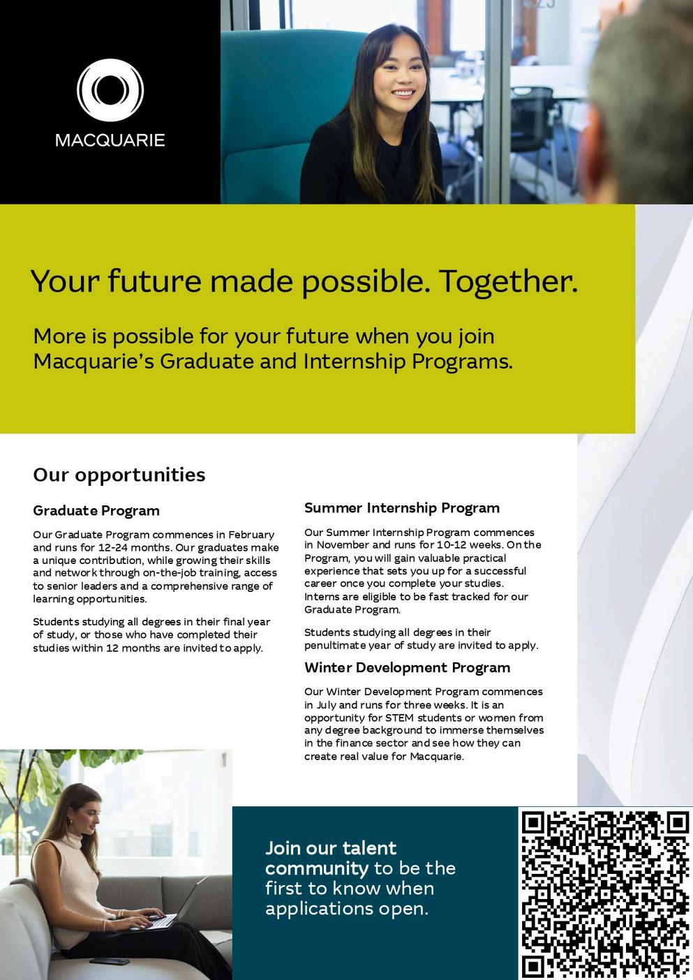 Secure a position with us early in your fi nal year, so you can focus on fi nishing your studies, while knowing you have a role ready for you
