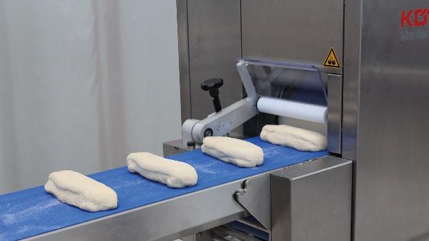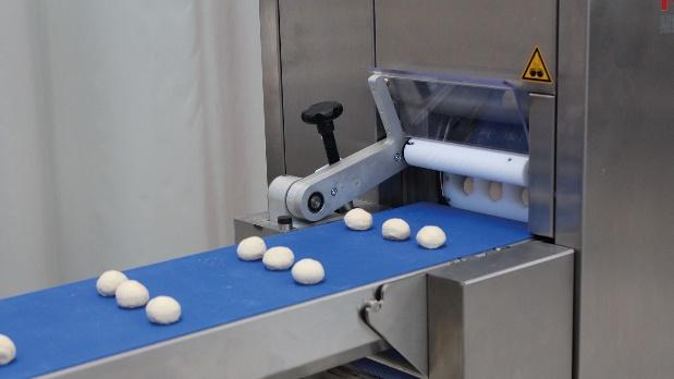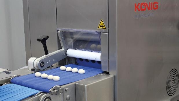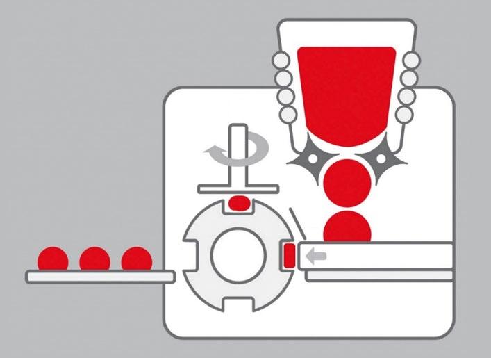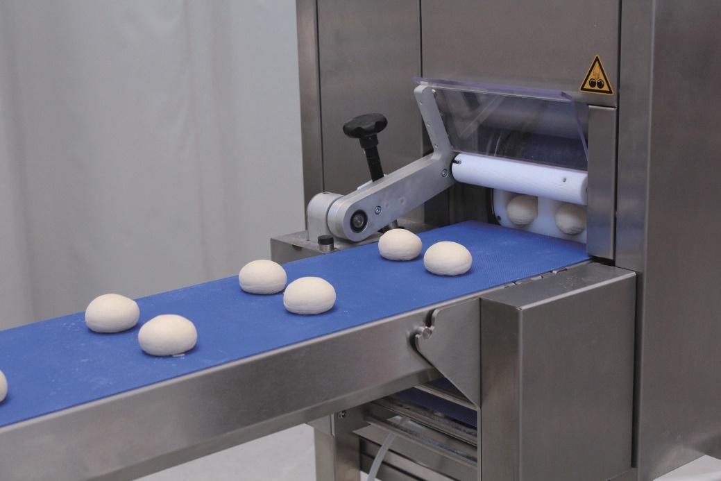 After an anti-clockwise rotation by 90°, the rounding of the dough pieces is performed by an oscillating rounding plate. The rounding eccentric can be set depending on the dough consistence and dough weight.