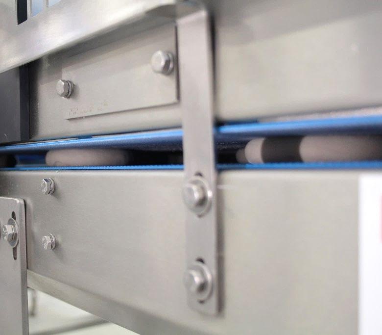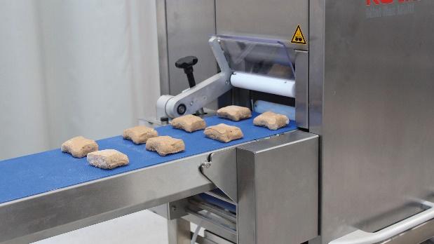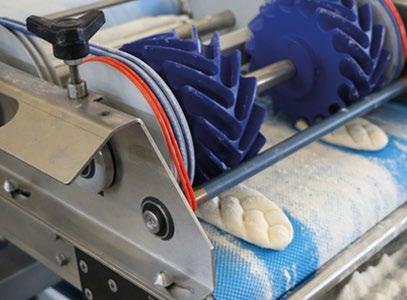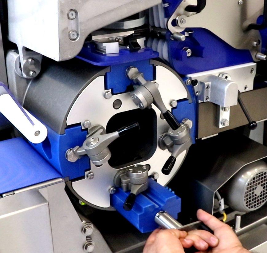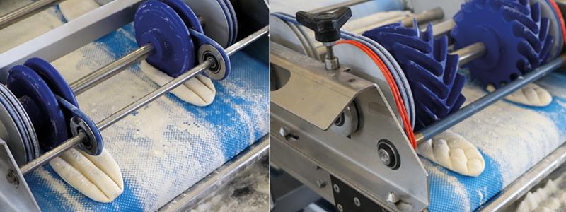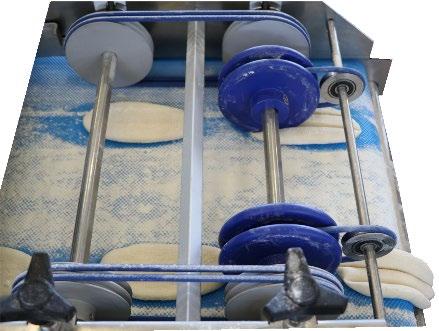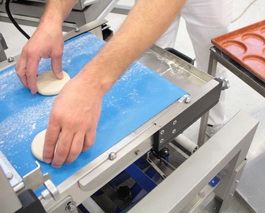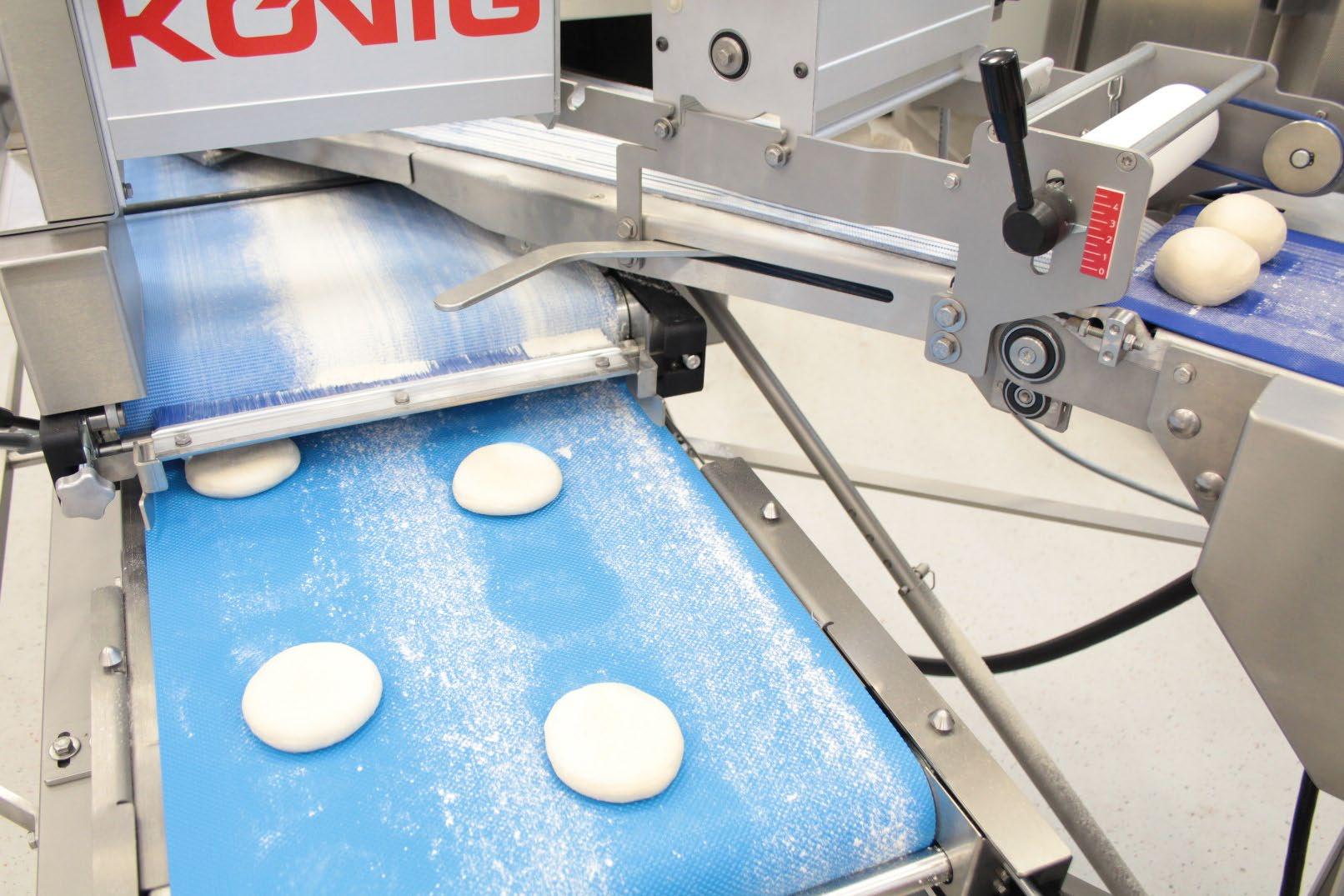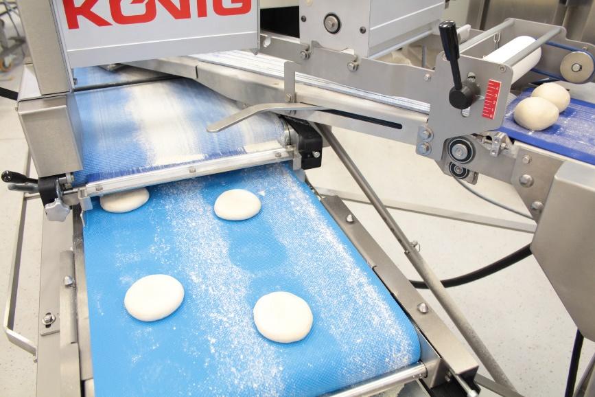 After another 90° rotation, the dough pieces are transferred to the discharge belt.