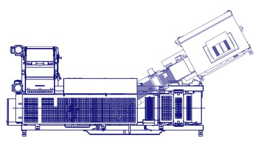The horizontally moving slider presses the dough into the openings of the rotating dividing drum. The excess quantity of dough is conveyed back to the dividing area by a scraper ledge.