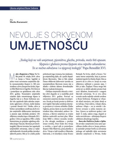 uke s Raspećem u Vitezu. Na Veliki petak 30. ožujka 2018. crkva sv. Juraja u Vitezu ‘izgubila’ je jedno vrsno suvremeno umjetničko djelo: monumentalno Raspeće (v. 300 cm), izrađeno u drvu (korpus bez križa), kipara Mile Blaževića iz Zagreba. Dovršeno je i postavljeno na apsidalnom zidu crkve 2011. godine. Nesumnjivo umjetnički vrijedno djelo renomiranoga kipara iz Zagreba koji je u Bosni Srebrenoj uradio više zapaženih djela sakralne umjetnosti, uglavnom u bronci, među kojima i poznati Ramski križ. Viteška crkva je brižno i promišljeno uređivana da bi svojim umjetnički oblikovanim interijerom u punom sjaju dočekala proslavu 150. obljetnice osnutka župe u listopadu 2011. godine. Crkva je izgrađena 1906. u duhu historicizma po projektu uglednog arhitekta Josipa Vancaša. Skroman prvotni liturgijski i likovni inventar, bez zapaženih umjetničkih ostvarenja, odraz je tadašnjih kulturnih i životnih prilika vjernika i njihovih pastira. Bilo je to u duhu pučke 58 svjetl ori jeci . ba