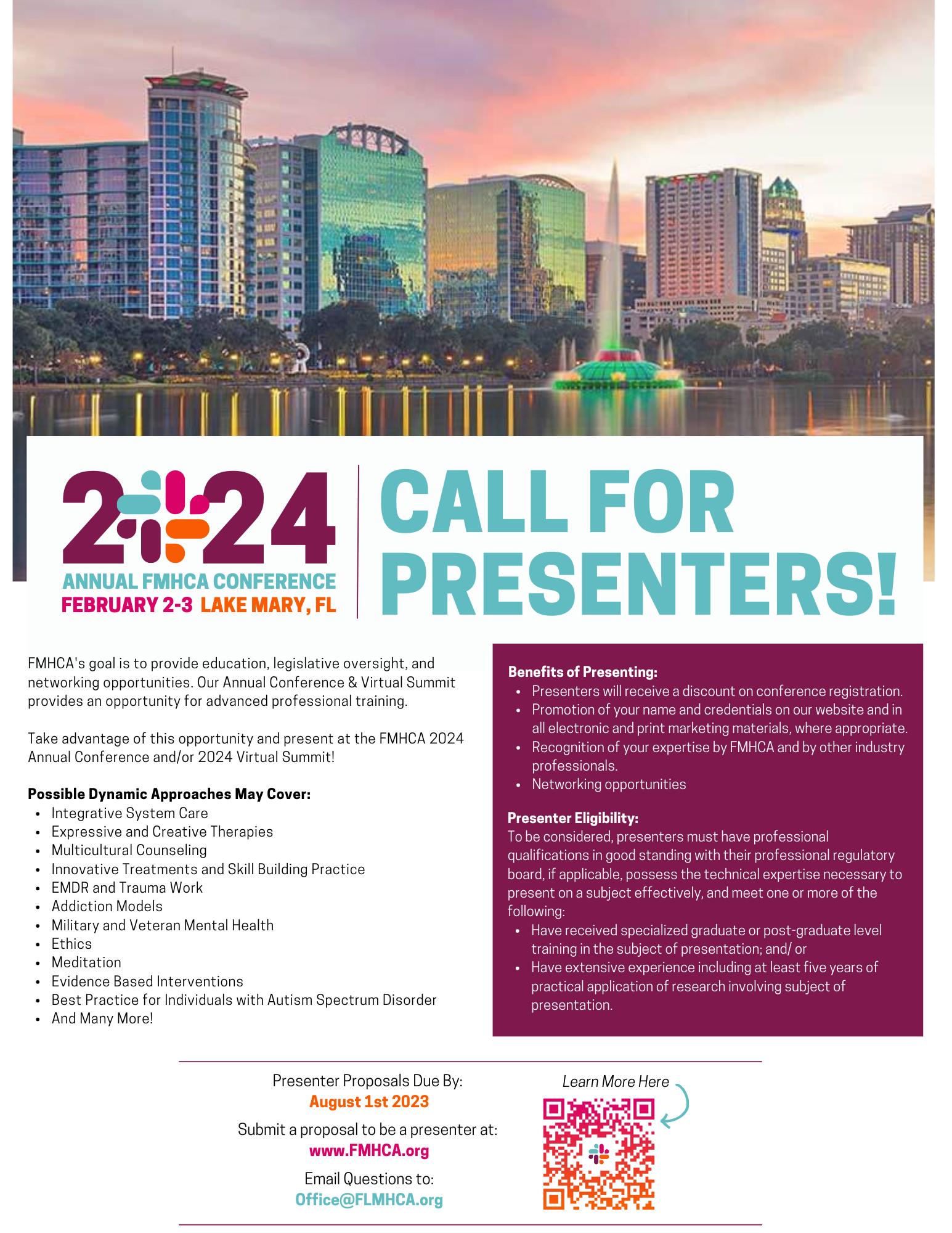 This conference is approved by the Florida Board of Clinical Social Work, Marriage and Family Therapy, and Mental Health Counseling (LCSW, LMFT, LMHC) FMHCA CE Broker #: 50-748; Conference Tracking #: 20-973900 FMHCA has been approved by NBCC as an approved by NBCC as an Approved Continuing Education Provider, ACEP No 2058 Programs that do not qualify for NBCC credit are clearly identified FMHCA is solely responsible for all aspects of the programs