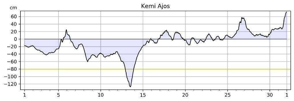 Merivesi laski hyvin matalalle Suomenlahden rannikolla myöhään illalla 12.12. ja Pohjanlahden rannikolla 13.12. Erityisesti Perämerellä mitattiin hyvin matalia vedenkorkeuksia. Kemissä sivuttiin edellisten 100 vuoden alinta mitattua arvoa, -128 cm teoreettisen keskiveden suhteen. TILASTOISTA POIMITTUA ILMASTOKATSAUS 12/2022 | 15
