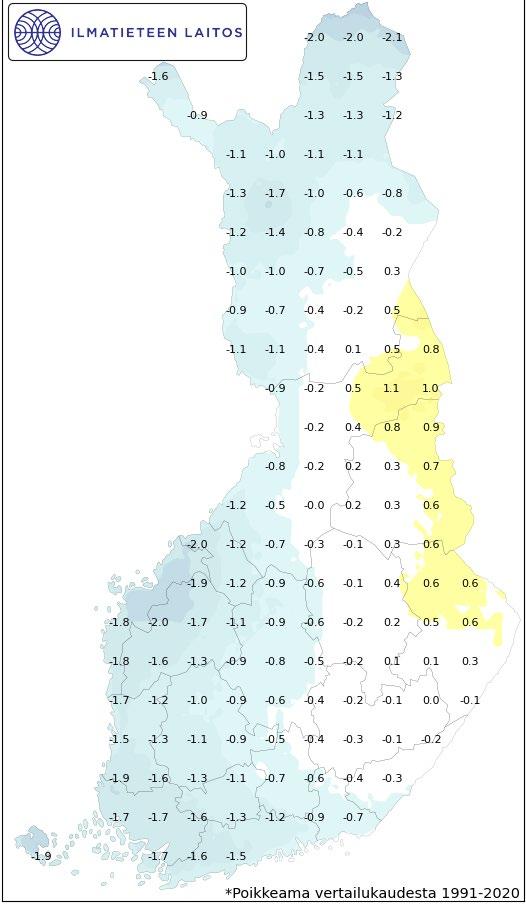 KESKILÄMPÖTILAN POIKKEAMA VERTAILUKAUDESTA 1991–2020