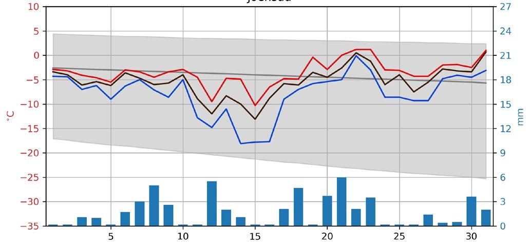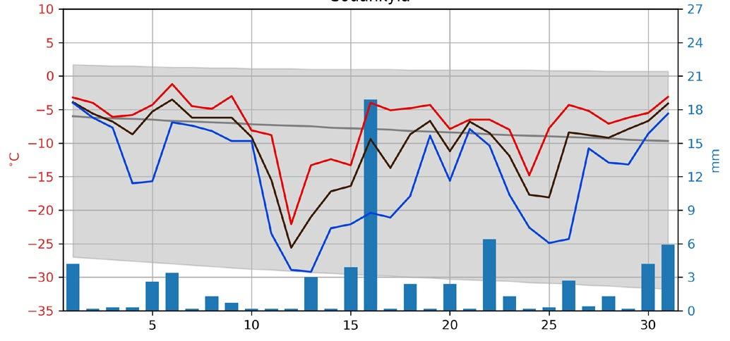 62 cm 103,4 mm Kuukauden ylin ja alin lämpötila -34,2 °C