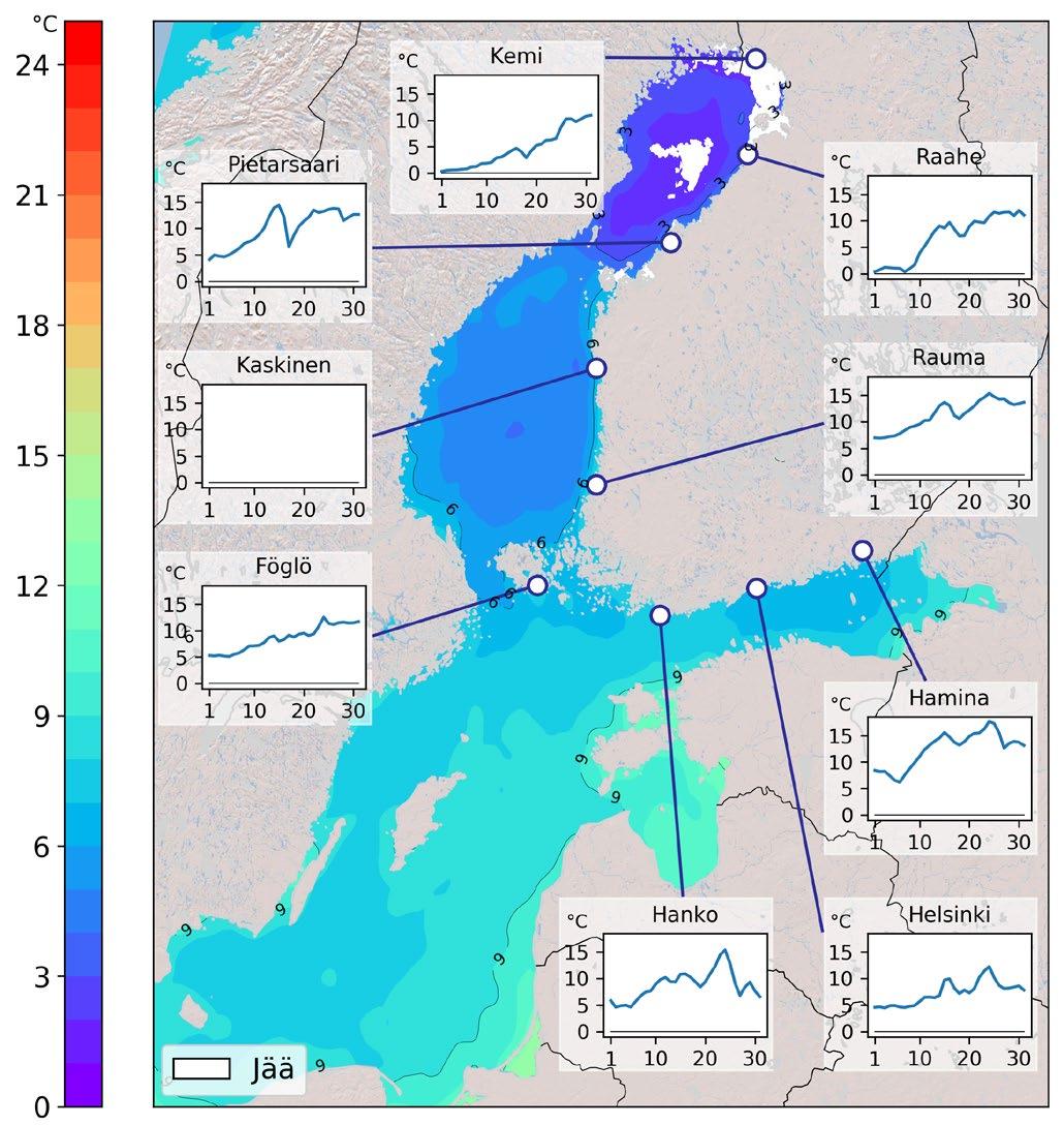 Despite the cold start for the month, May became eventually warmer than usually almost over the whole of Finland. Except in northern Lapland, May was also drier and sunnier than usually. However, exceptional flooding took place in Torne river valley after mid-May. The mean temperature in May was somewhat above the long-term average from 1991–2020 in most of Finland. In southern Finland, however, the mean temperature was mostly very close to the long-term average whereas in eastern Lapland it was even more than 3 °C warmer month than usually. Also, in some maritime locations May was a noteworthy warm month. It was the eighth warmest May on record in Utö, Pargas, the sixth warmest in Russarö, Hanko and the second warmest in Valsörarna, Korsholm.
