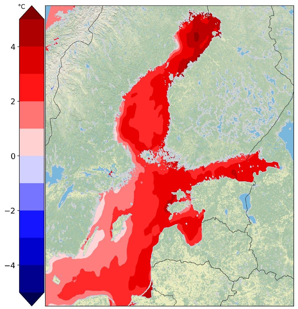 Ilmatieteen laitos on tuottanut Itämeren pintalämpötila- ja jääanalyysit Marine Copernicuksen aineistosta. Keskiarvot on laskettu päivittäisistä arvoista. Asemakohtaiset kuvaajat perustuvat Ilmatieteen laitoksen mareografihavaintoihin.