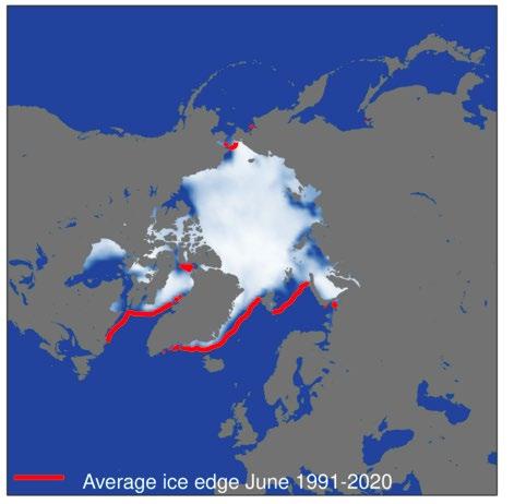 Arktisen merijään laajuus pysyi kesäkuussa 2024 suhteellisen tavanomaisena. Keskimäärin merijää peitti 11,1 miljoonaa km², joka on vain 0,4 miljoonaa km² (eli noin 3 %) alle vuosien 1991–2020 kesäkuun keskiarvon ja 12. pienin kesäkuun jääpeitteen laajuus satelliittihavaintojen aikakaudella. Tämä on lähellä vuodesta 2010 lähtien kesäkuussa arktisella alueella tyypillisesti vallinnutta jääpeitteen laajuutta. Pienin kesäkuun jääpeitteen laajuus, 6 % alle keskiarvon, havaittiin vuonna 2016.