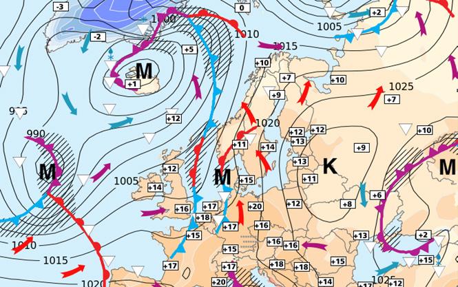 Kuvat ovat Ilmatieteen laitoksen säätilanneanalyysejä ajanhetkiltä 12 UTC eli klo 14 Suomen normaaliaikaa (kesäaikana klo 15).