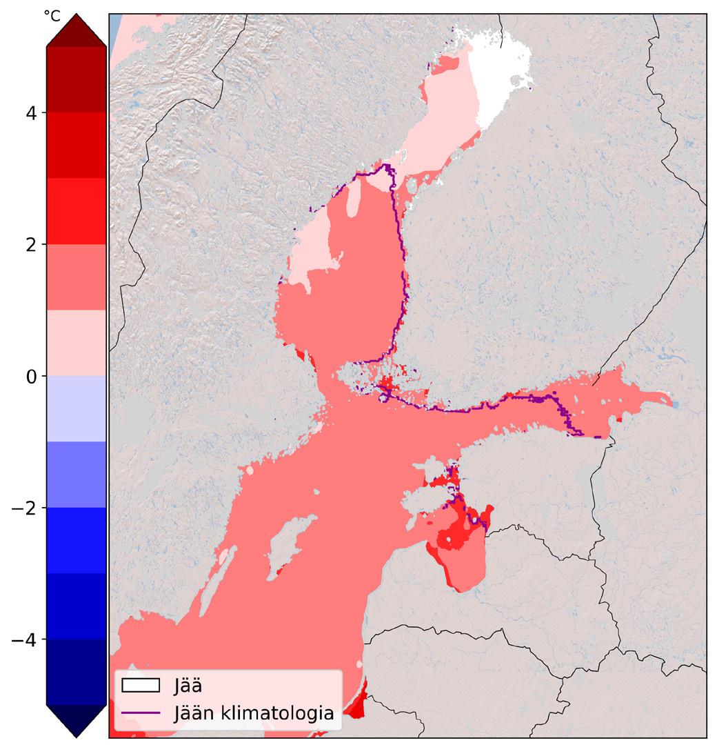 Ilmatieteen laitos on tuottanut Itämeren pintalämpötila- ja jääanalyysit Marine Copernicuksen aineistosta. Keskiarvot on laskettu päivittäisistä arvoista. Jäällisen alueen rajana pidetään jään 15 %:n peittävyyttä. Asemakohtaiset kuvaajat perustuvat Ilmatieteen laitoksen mareografihavaintoihin.