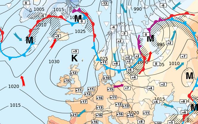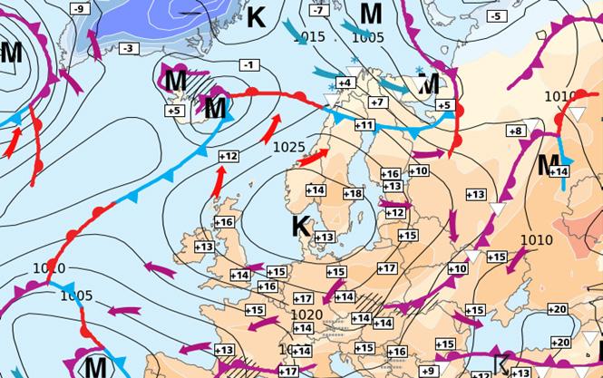 Kuvat ovat Ilmatieteen laitoksen säätilanneanalyysejä ajanhetkiltä 12 UTC eli klo 14 Suomen normaaliaikaa (kesäaikana klo 15).