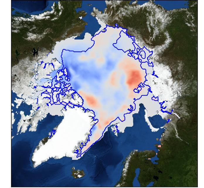 Jääpeitteen laajuutta on mitattu satelliitein vuodesta 1979 ja paksuutta vuodesta 2010. Ilmastollisesti jään kehitystä kuvaa hyvin syyskuun minimilaajuus (kuva 10). Tilavuusarvioita (kuvat 11) ei toistaiseksi tehdä satelliittidatasta kesälle, johtuen kesän mittauksiin liittyvistä suurista epävarmuuksista.