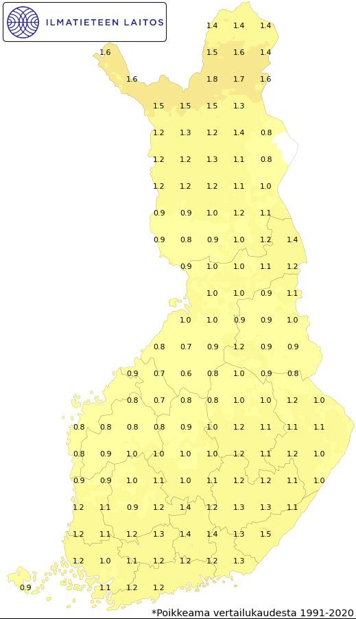 Lämpötilan poikkeama normaalista (°C)