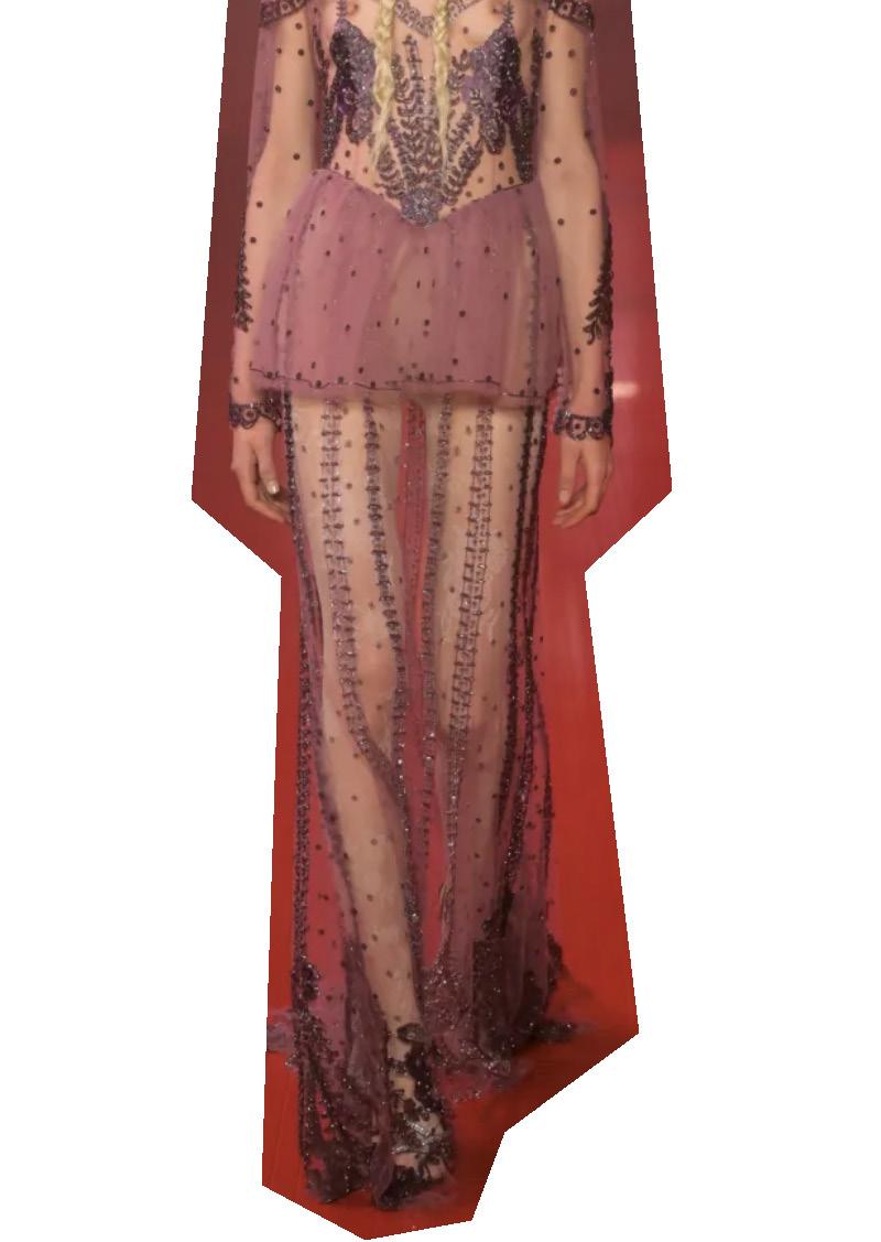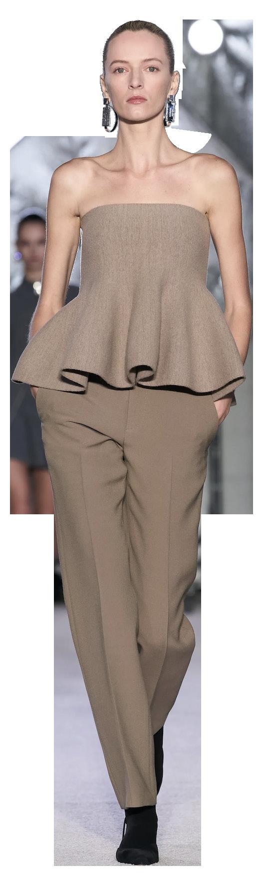Las telas translúcidas invaden vestidos, blusas y capas superpuestas, jugando con cuerpos y espacio negativo. Valentino, Altuzarra, Chloé, Nina Ricci, Phoebe Philo y Carolina Herrera exploraron gasas, organzas y tules con bordados y cortes estratégicos que sugieren sin revelar. El efecto: sensualidad delicada en clave moderna.