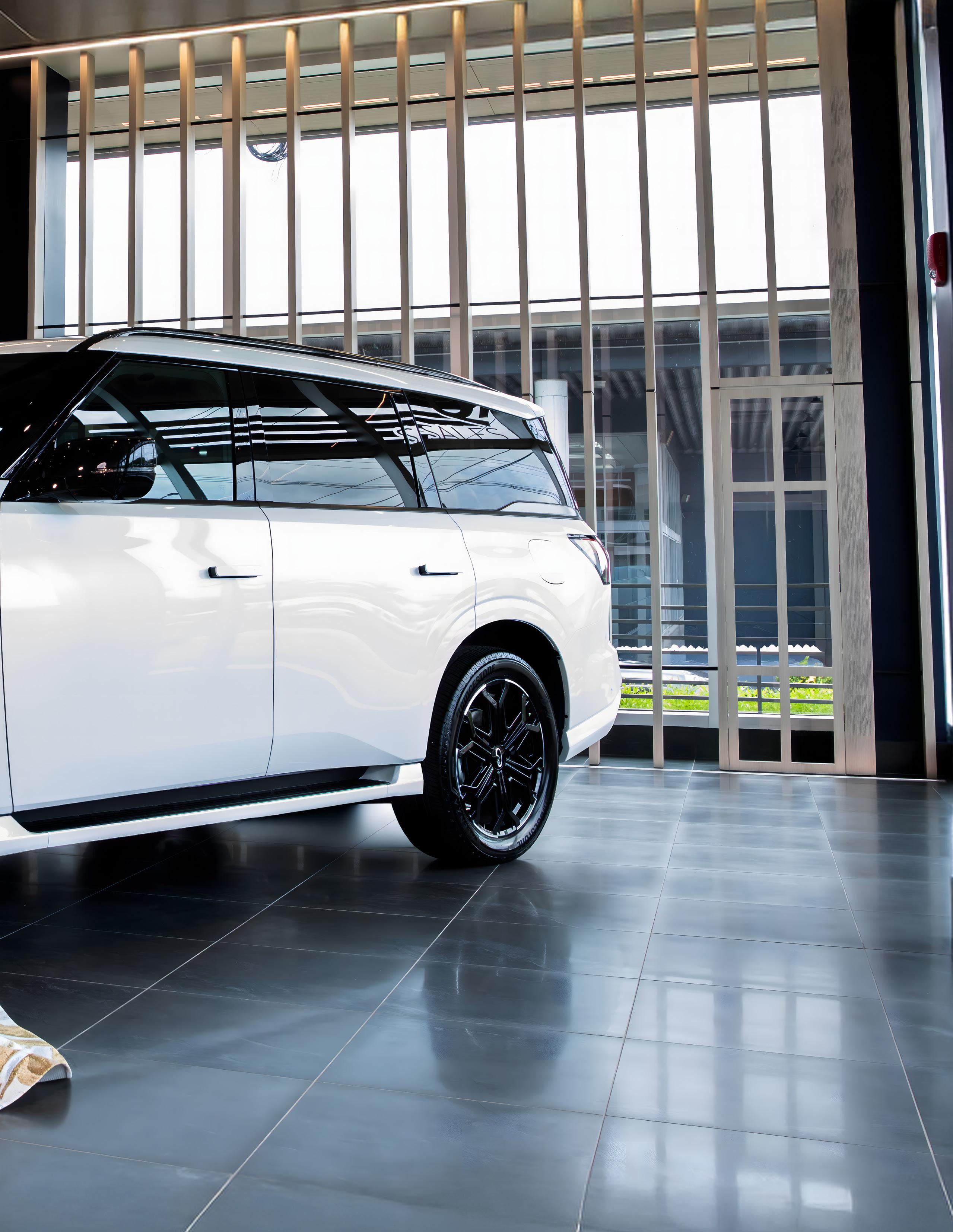Modelos QX 60 Sport, QX 60 Autograph y QX 80 Sport de Infiniti; vestido de Jaer Cabán; calzado Berness estilo Camelia de Fabulous Shoes Inc.; pantallas y anillos de Tous.