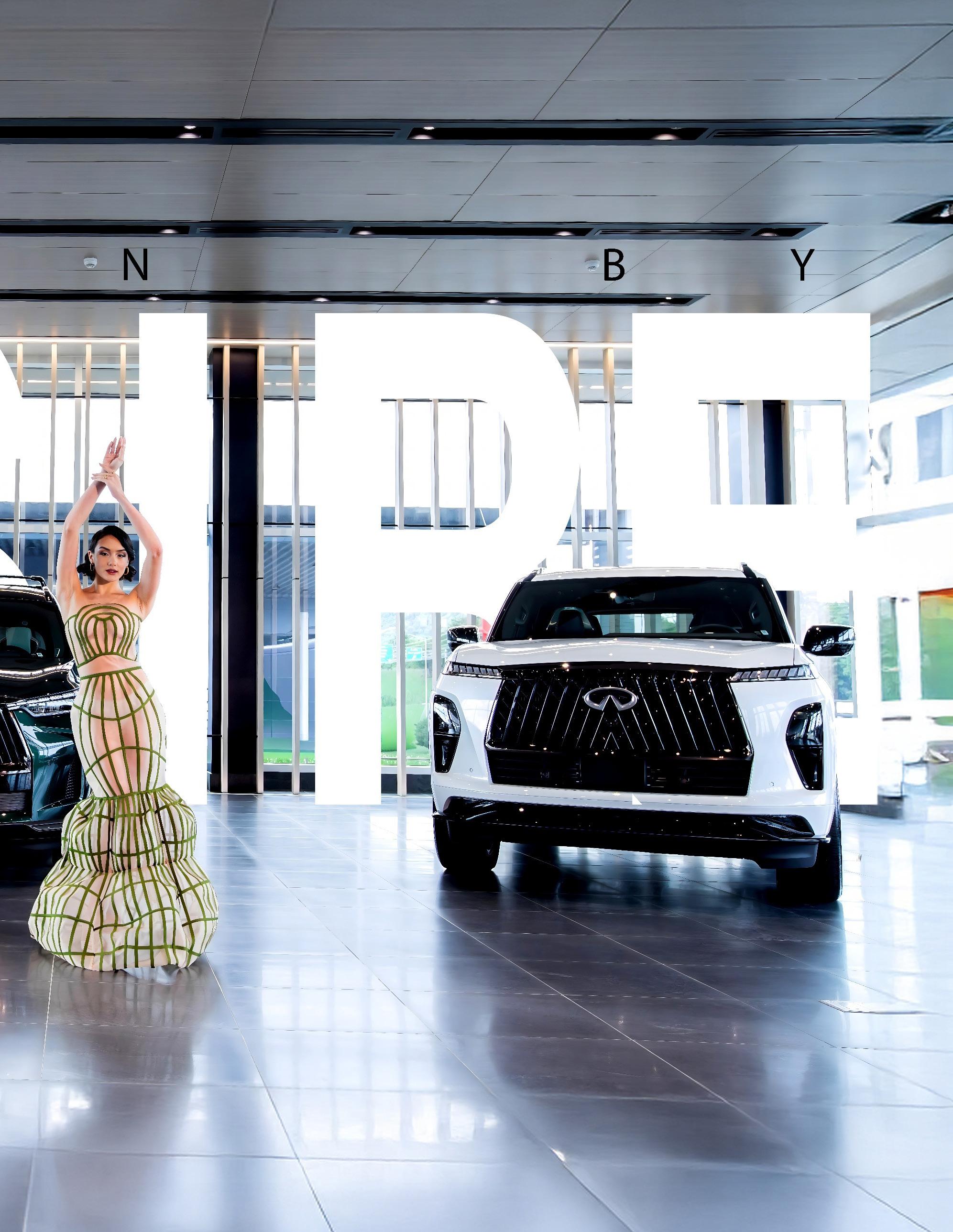 Modelo QX 60 Sport de Infiniti; vestido de Marcos Carrazana; pantallas y brazaletes de Fabulous Shoes Inc.