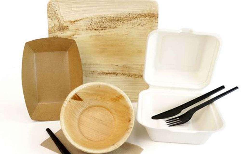 Organic packaging materials: bagasse, palm leaves and bamboo as well as cardboard and paper from sustainably managed forests.