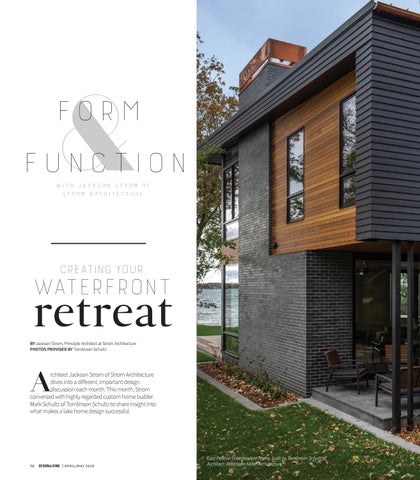 rchitect Jackson Strom of Strom Architecture dives into a different, important design discussion each month. This month, Strom conversed with highly regarded custom home builder Mark Schultz of Tomlinson Schultz to share insight into what makes a lake home design successful.