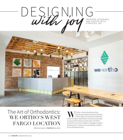 E Ortho, a local orthodontics clinic, recently expanded to its second location in West Fargo. Partnering with Coloradobased architects JoeArchitect and local construction company Olaf Anderson Construction, WE Ortho found their next home nestled in a gorgeous modern building with an interior that was perfectly outfitted for an orthodontist clinic.