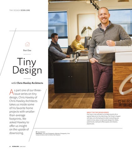 s part one of our threeissue series on tiny design, Chris Hawley of Chris Hawley Architects takes us inside some of his favorite home projects with smallerthan-average footprints. We asked Hawley to offer us insight on the upside of BY Tracy Nicholson PHOTOS BY J. Alan Paul Photography, Gilbertson Photography, Chris downsizing. Hawley Architects, Stahl Architects, Paul Flessland