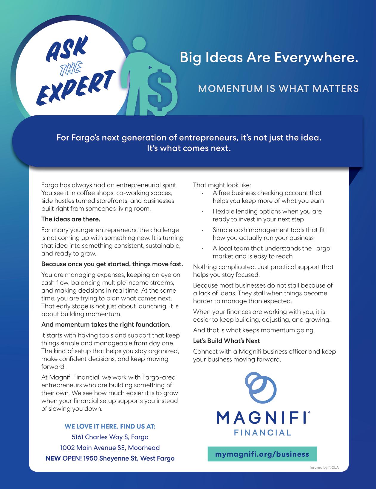 In this issue, we’re highlighting the people redefining what it means to start young and succeed on their own terms. From early risks to smart pivots and standout leadership, their stories reflect a new kind of ambition, one that’s shaping the future of Fargo-Moorhead one business at a time.