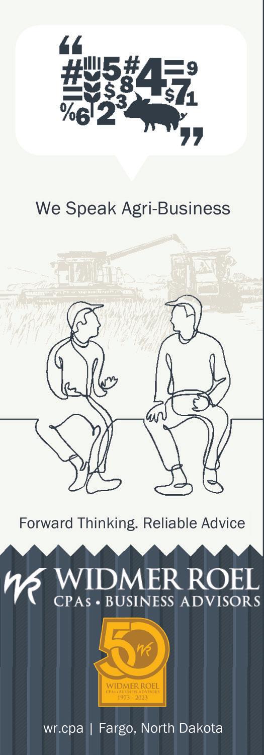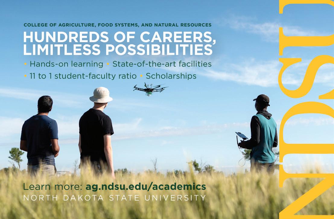 Future Farmer is published 6 times a year and is direct mailed to farmers throughout North Dakota and Minnesota. Find us online at Futurefarmermag.com. Future Farmer is published by Spotlight LLC, Copyright 2023 Future Farmer. All rights reserved. No parts of this magazine may be reproduced or distributed without written permission of Future Farmer, and Spotlight LLC, is not responsible for, and expressly disclaims all liability for, damages of any kind arising out of use, reference to or reliance on such information. Spotlight LLC, accepts no liability for the accuracy of statements made by the advertisers. January/February 2023 Volume 4 Issue 1 Spotlight LLC 4609 33rd Ave S Suite #304 Fargo, ND 58104 Info@SpotlightMediaFargo.com ADVERTISING: 701-478-SPOT (7768) Publisher EDITORIAL Editorial Team Lead Editors Art Director Editorial Graphic Designers Creative Strategist Contract Content Specialist Contributors INTERACTIVE Business Development Manager Business Development Associate Videographers Director of Digital Advertising Results Graphic Designer Web Designer Social Media Specialist ADVERTISING VP of Business Development Sales Representatives Sales & Marketing Advisor Marketing Associate Client Relations Client Relations Manager Marketing Coordinator ADMINISTRATION Operations Assistant DISTRIBUTION Delivery Mike Dragosavich Brady Drake FargoInc@SpotlightMediaFargo.com Geneva Nodland, Grant Ayers, Sam Kise Kim Cowles Levi Dinh, Ty Betts Josiah Kopp Gary Ussery Emerging Prairie Nick Schommer Kellen Feeney Tommy Uhlir Jonathan Chicka Ben Buchanan Kellan