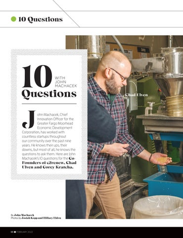 Questions ohn Machacek, Chief Innovation Officer for the Greater Fargo Moorhead Economic Development Corporation, has worked with countless startups throughout our community over the past nine years. He knows their ups, their downs, but most of all, he knows the questions to ask them. Here are John Machacek’s 10 questions for the CoFounders of c2renew, Chad Ulven and Corey Kratcha.