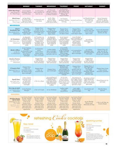 Happy Hour 1-7pm, $5 all-you-candrink for ladies 9pm-midnight, $3 pounders (all day) $2 Captain Morgan & $3 bomb shots 9pmmidnight