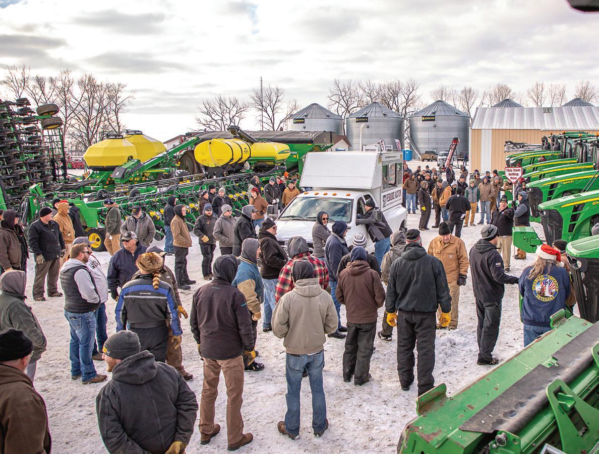 For decades, when an auction took place, farmers and neighbors gathered in a yard or equipment lot. An auctioneer stood on a trailer or platform. Buyers raised their hands to bid.