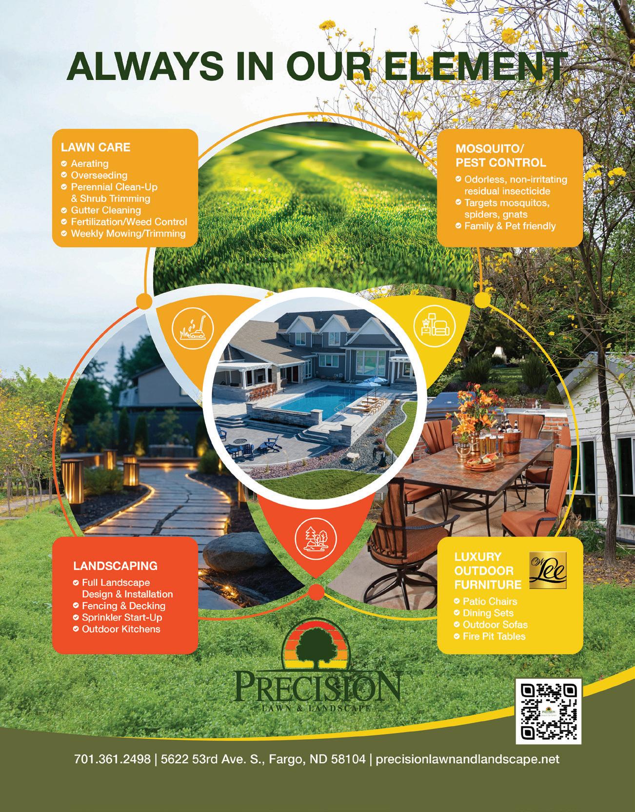mowing, fertilizing and weed control, edging, and aerating, to expansive landscaping projects including rock and fabric installation, plants, trees, and breathtaking water and fire features— Precision truly does it all. But the company's expertise doesn't end there.