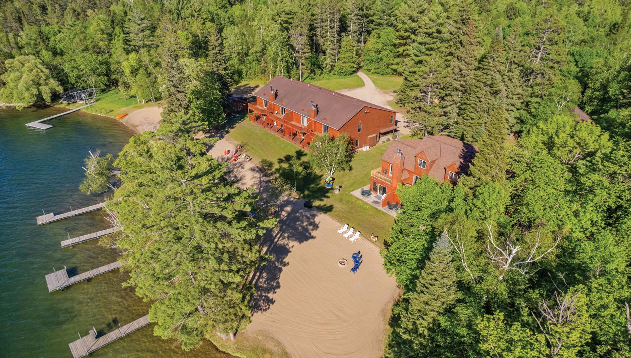 The resort's beautiful Grand Lodge, which overlooks Long Lake, offers cozy stone fireplaces ideal for relaxing, reading, or gathering with loved ones. The lodge is equipped with video games, pool tables, a TV, and a snack bar.