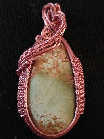 I had started my business while living out of a camper and traveling from Minnesota out to the West Coast with my family. We were stopped at a music festival called Sawtooth Valley Gathering out in Idaho. I had met a gentleman who was selling rocks and doing wire wraps. At the time, I had been doing some macramé work, making necklaces as well. After chatting for the weekend, we decided to sit down and trade skills, spending a day sitting at the festival grounds showing each other what we knew. After leaving, he sent me off with a bag of stones, and I would collect doorbell wire and strip the wires to use for my jewelry. I have since switched to different wires and cabochons, but have held true to the basic frames, as well as picking up a handful of other wire weaving techniques. I did use wire weaving to start the business and have been forming it into my different crafts throughout the years. I have done woodworking, wood burning, painting, and soon will also be adding some drawing into the mix!