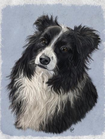 women. I love seeing women light up when they feel represented in my artwork.” Pet portraits hold a special place in her heart, too—especially since one of her earliest and most challenging commissions was a memorial portrait of a family dog.