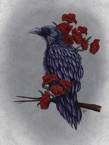 Her art, meanwhile, balances whimsy and depth. Popular prints include “Skull with Flowers,” “The Raven,” and a fan favorite she calls “The Holy Three”—a cozy still life featuring books, cats, and plants.