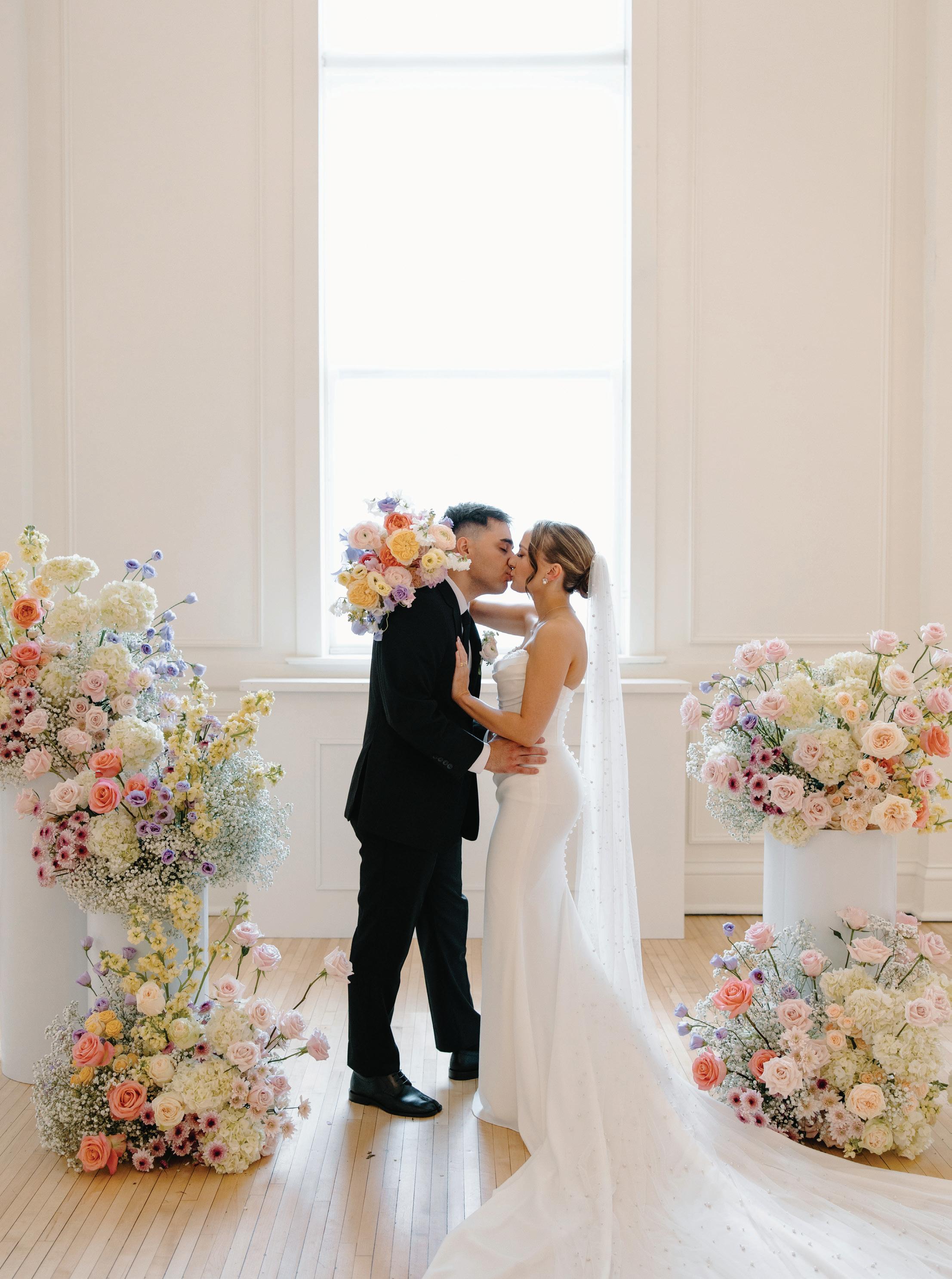At Floret + Foliage, no two weddings are ever alike. Whether it’s a sprawling arch bursting with coral peonies and fuchsia dahlias, or a minimalist structural piece that plays with negative space, the team thrives on interpreting a couple’s vision through texture, tone, and movement. Every petal, stem, and leaf contributes to a cohesive visual experience.