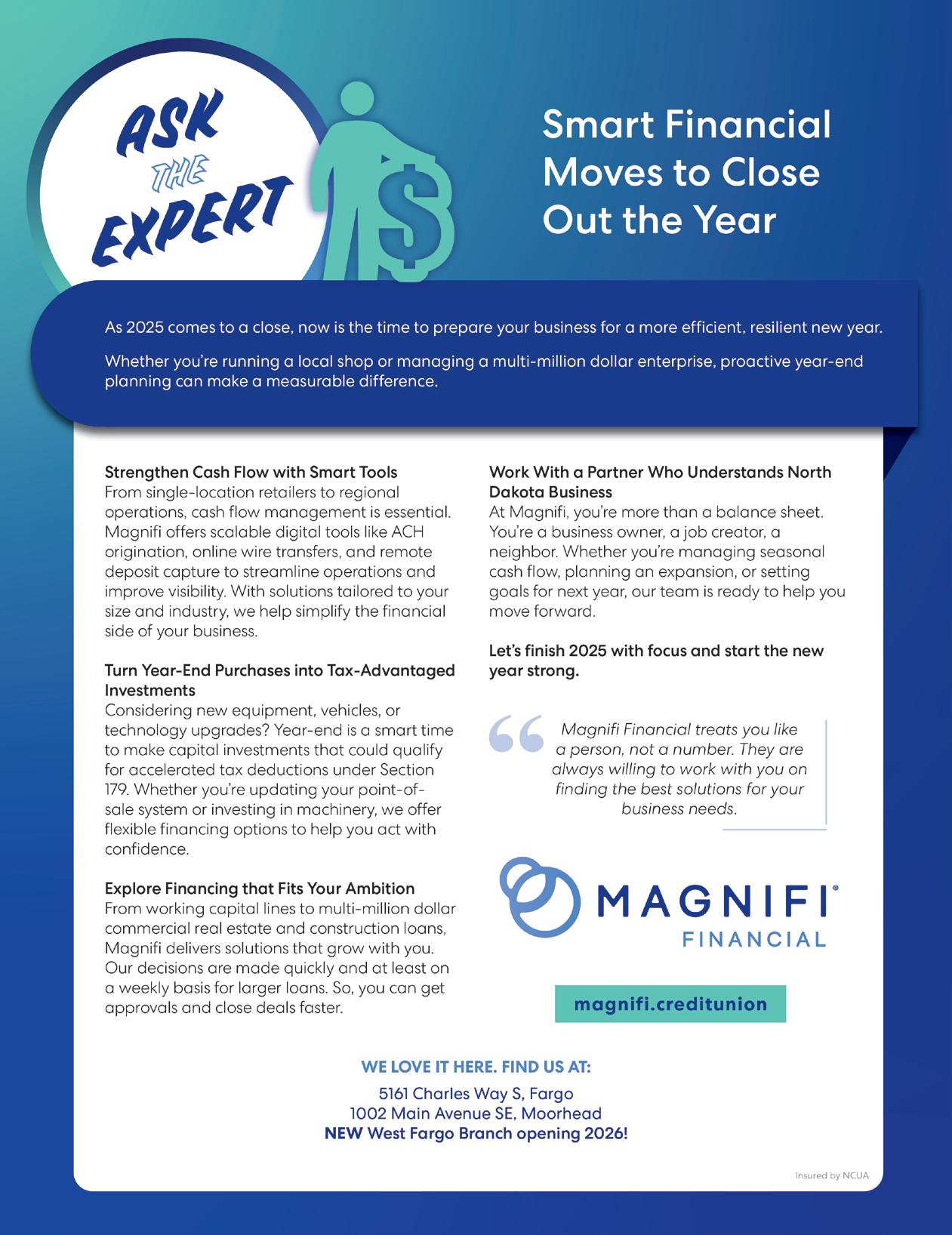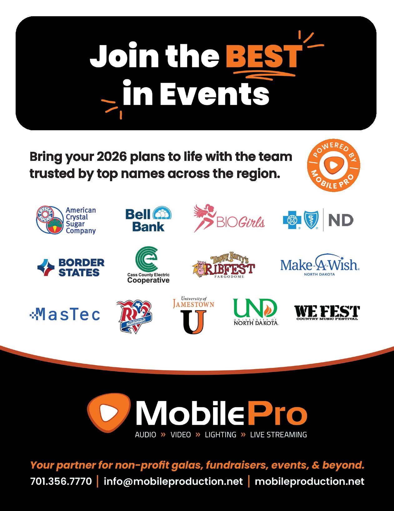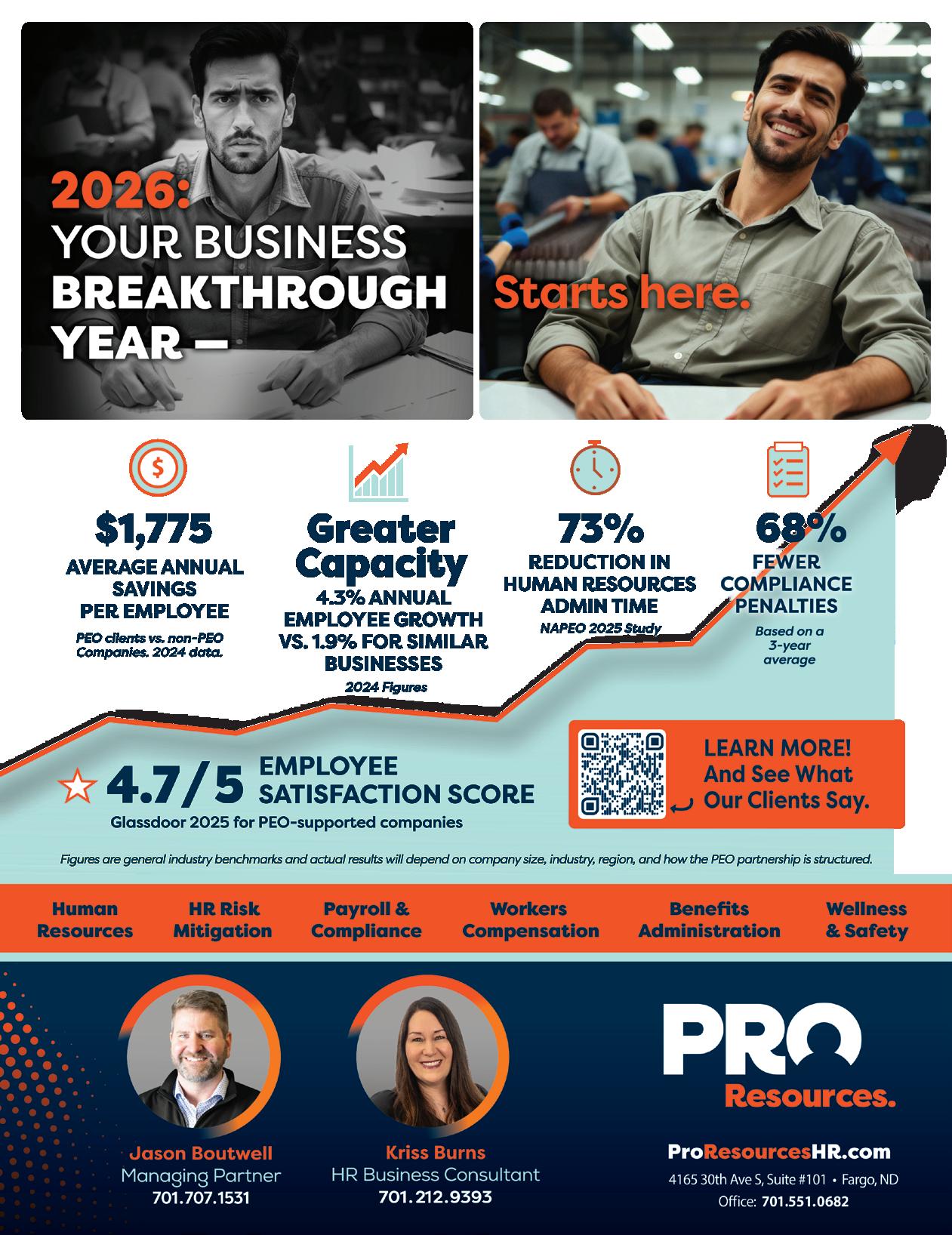 elcome to the statewide edition of Fargo INC!, where North Dakota’s business communities come together in one place. From Fargo to Williston, BismarckMandan to Grand Forks, and Dickinson to Minot, this issue celebrates the innovation, growth, and entrepreneurial spirit driving our state forward. Inside, you’ll find insights, strategies, and stories from across North Dakota that business leaders can apply in their own markets— plus a spotlight on the people and companies shaping our statewide economy. Whether you’re seeking ideas, connections, or inspiration, this issue is your guide to the best of North Dakota business.