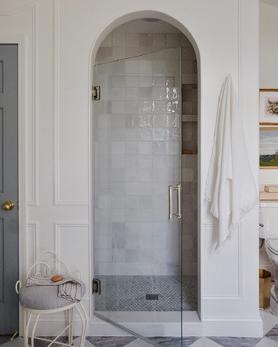 "One thing that I enjoyed about this project was the ability to create lots of illusions," Roxanne said. "Sometimes a simplistic-looking design can be a lot more intense than you would imagine." The floating vanity and shelves are good examples of this, giving a sense of space and wonderment versus a standard design that meets the floor.